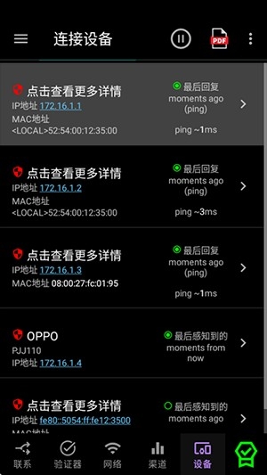 2、连接设备识别:自动发现并列出所有接入路由器的设备及其型号信息。
