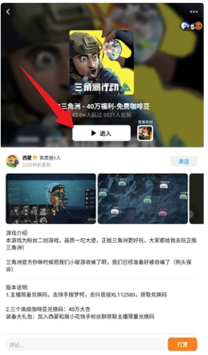 4、点开该结果进入到游戏详情页,在详情页面点击进入按钮,即可快速加载并进入游戏场景。