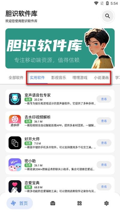 3、进入首页,这里有多种类型的软件。