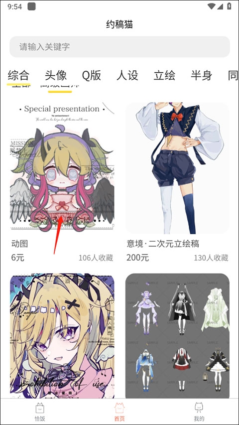 2、在上方选择你需要约稿的种类,也可以搜索关键字