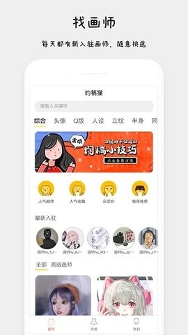 1、点击进入约稿猫app官方版,进入首页