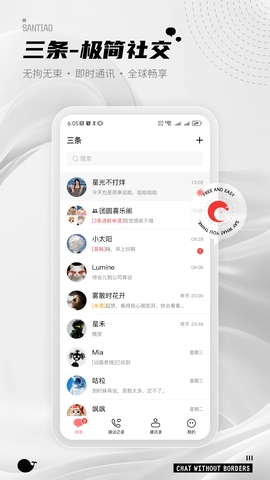 三条是一款功能全面,界面设计简洁直观,没有多余繁杂的元素,同时具备强大实用的功能。用户在使用时,可随时添加自己感兴趣的聊天对象,不受时间和地点限制,轻松开启互动交流,满足基础社交需求。若你对这款兼顾简洁体验与社交实用性的软件感兴趣,不妨点击下载尝试。