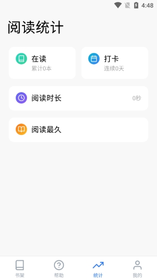 4、统计你的阅读时长以及阅读书籍本数,超全面记录平台。