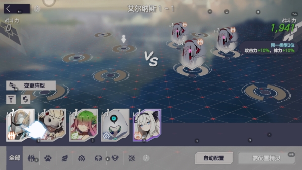 2、点击配置适合的角色,变换阵型,一键即可变换,点击开始战斗,命令精灵使用技能。