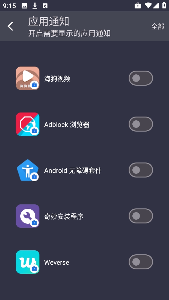 3、支持选择任意应用显示通知,按需勾选需适配的应用程序。