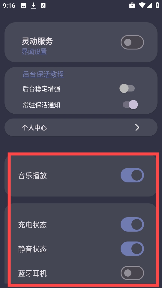 4、设置充电状态、静音状态及蓝牙耳机连接显示等自定义状态,完成后保存设置即可启用。