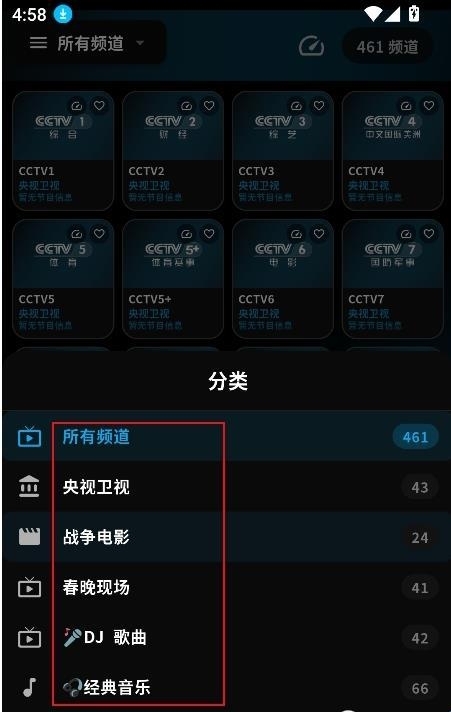 3、支持频道分类管理,可根据综艺、新闻、体育等类型手动分类,找频道时更有条理,不用乱翻。