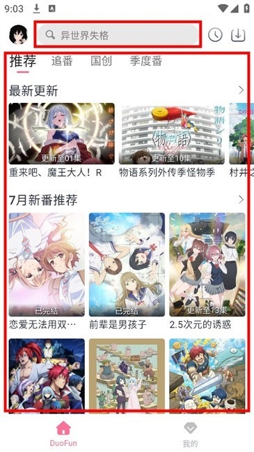 1、打开进入DuoFun,通过分类推荐或搜索找到感兴趣的番剧。