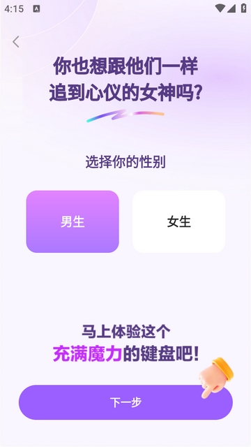 4、选择你的性别,继续下一步。