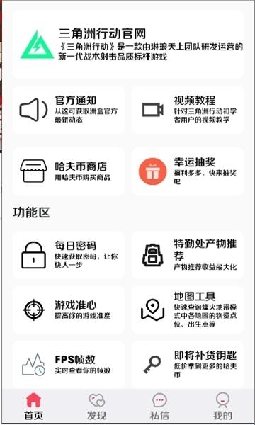 洲盒是一款专为热门游戏《三角洲行动》玩家量身打造的一站式官方社区应用,内置非常多的实用功能,每日密码、游戏准心、fps帧数、地图工具等十多种服务,让玩家可以更快更好的获取游戏相关内容,注册登录即可使用。