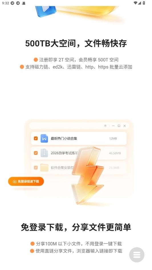 2.使用手机号/邮箱注册,注册即得2T空间,在设置页查看权益、开启安全设置;