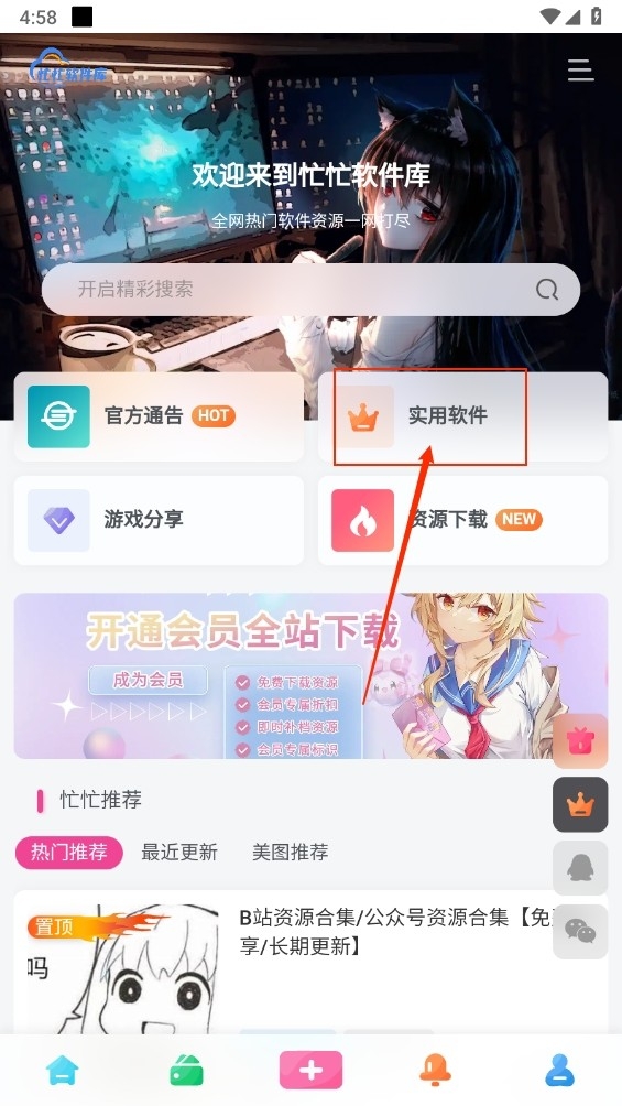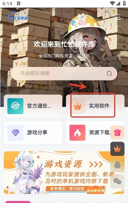 1、在本站下载打开忙忙软件库。