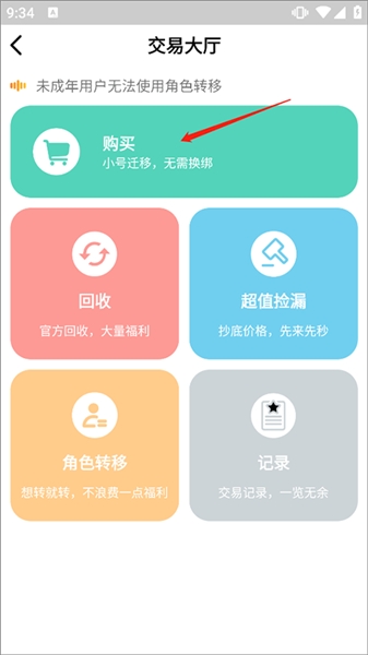 2、进入交易大厅后点击购买功能。