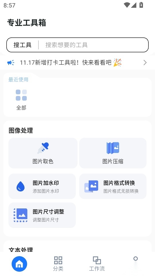 TBox软件是一款集图像处理、文本处理以及网络测试等工具于一体的综合性平台,涵盖图片处理、文本编辑、信息查询、格式转换与网络测速等多种类别,各种工具分类一键搜索找到,只需导入文件,即可实现多种格式的快速转换。