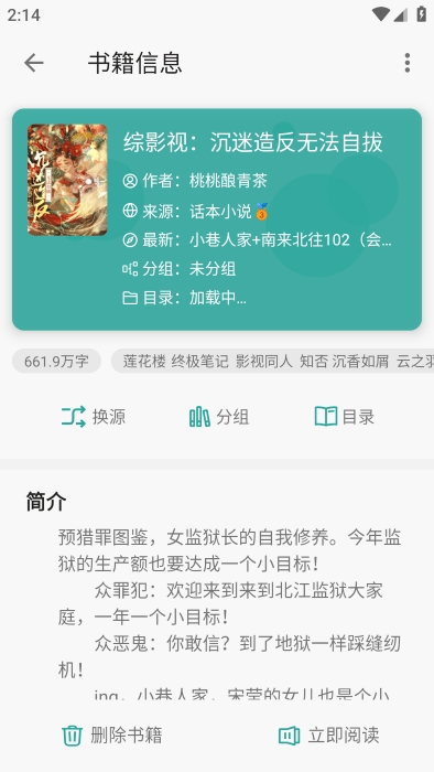 丰富书源:内置了大量书源,用户无需繁琐设置即可直接使用,轻松阅读全网精彩小说。