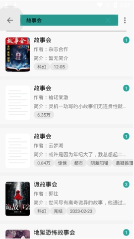 4、找资源也是特别方便,可以在搜索里输入想看的书籍名字搜索各类相关书资源。3673小编测试的比如输入故事会,如图: