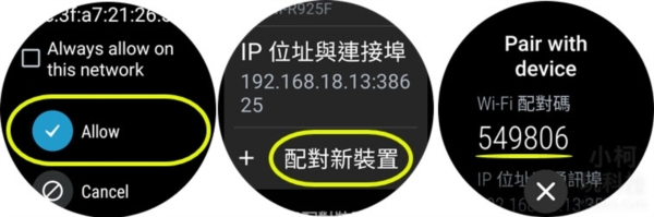 若正常有连线到同一个网路下的手机,请按Allow同意连线,再点击配对新装置,此时请记下Wi-Fi配对码,接下来手机上会需要输入这些资料。