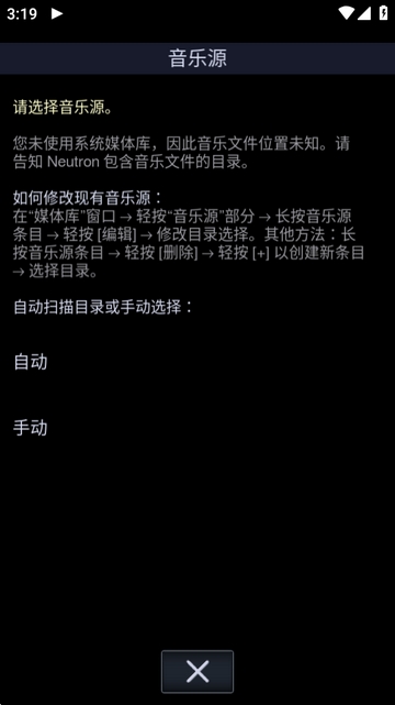 4、进入软件选择音乐源,支持自动和手动。