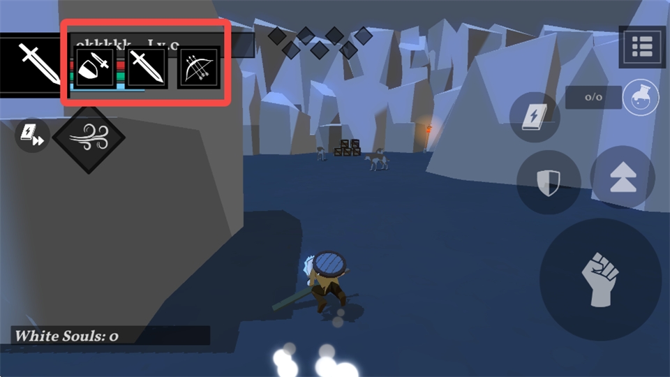 1、目前我们使用的武器是长剑,点击右上角图标。